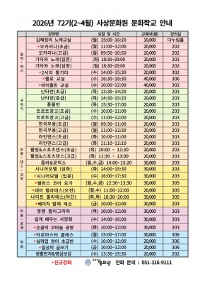 2026년 72기(2월~4월) 문화학교 강좌 수강생 모집 안내