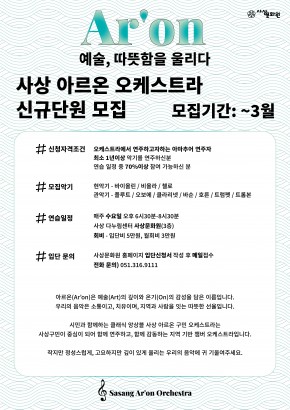2026 아르온 오케스트라 단원 신규모집 안내
